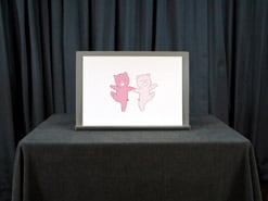 折りたためて、簡単にしまえる軽ーい紙しばいスタンドです。